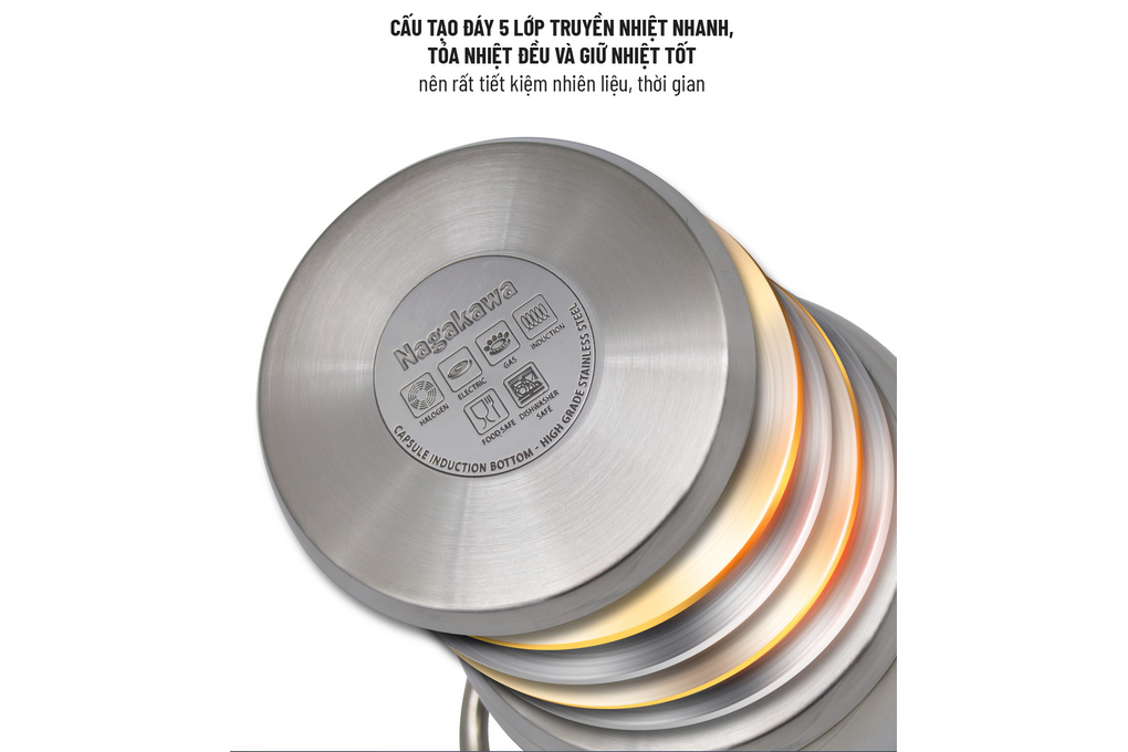Bộ 3 nồi inox 5 lớp đáy từ Nagakawa NAG1351 (16cm, 20cm, 24cm)