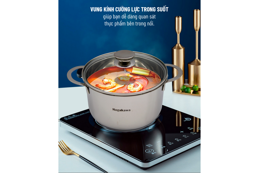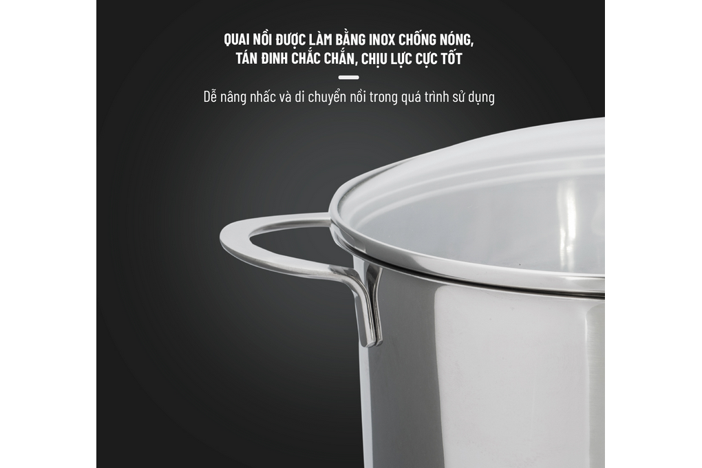 Vung nồi có chất liệu kính cường lực sang trọng chịu va đập, giữ nhiệt tốt và giúp bạn dễ dàng quan sát thực phẩm trong quá trình đun nấu.