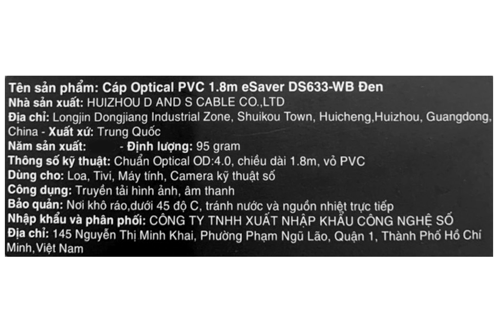 Cáp Optical PVC 1.8m eSaver DS633-WB Đen