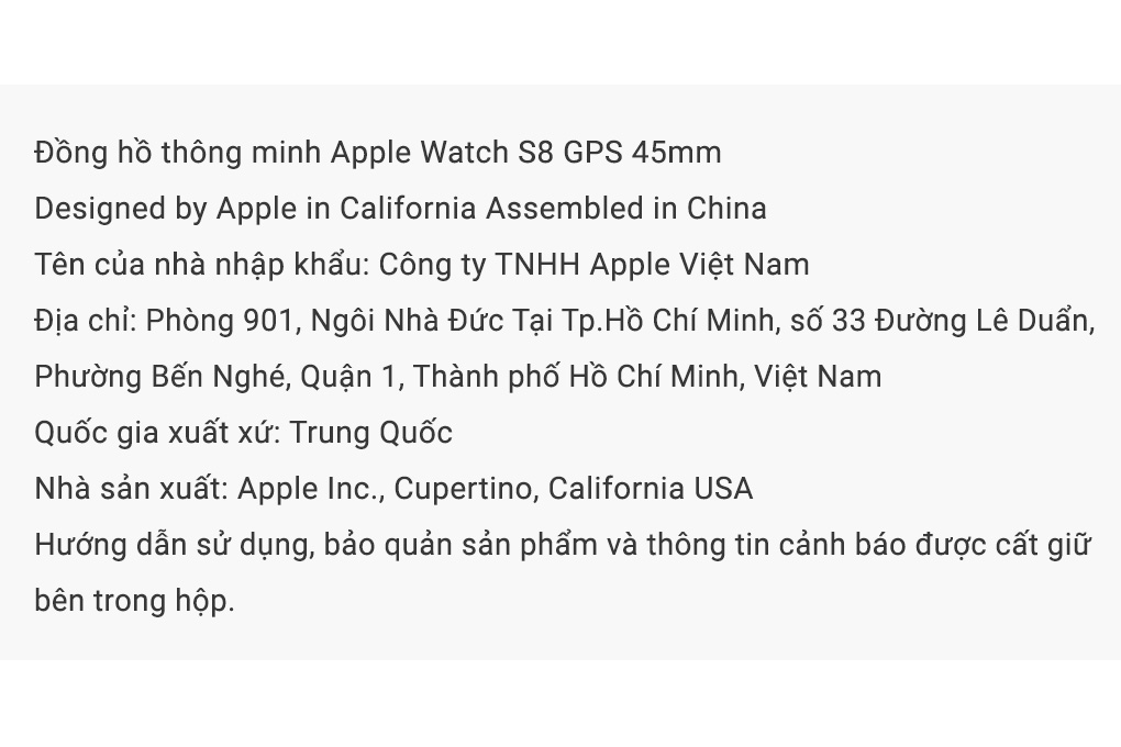 Với vẻ ngoài hiện đại và ẩn chứa bên trong là nhiều tiện ích thông minh giúp bạn chăm sóc sức khỏe, rèn luyện thể thao, giải trí hiệu quả. Apple Watch S8 GPS 45mm sẽ là một sự lựa chọn tuyệt vời dành cho những ai yêu thích công nghệ, muốn tận hưởng cuộc sống theo cách mới mẻ.