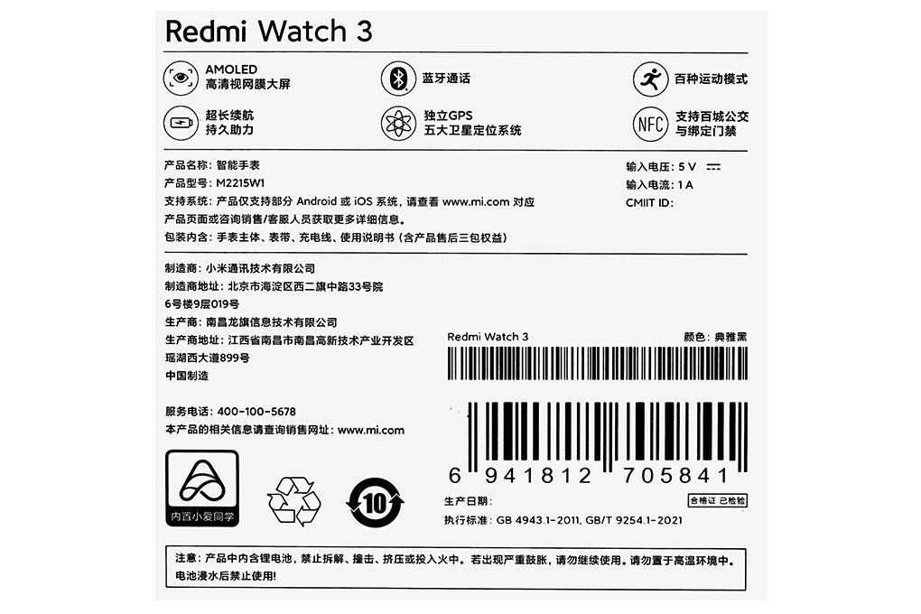 Thông số kỹ thuật Đồng hồ thông minh Xiaomi Redmi Watch 3 42.6mm
