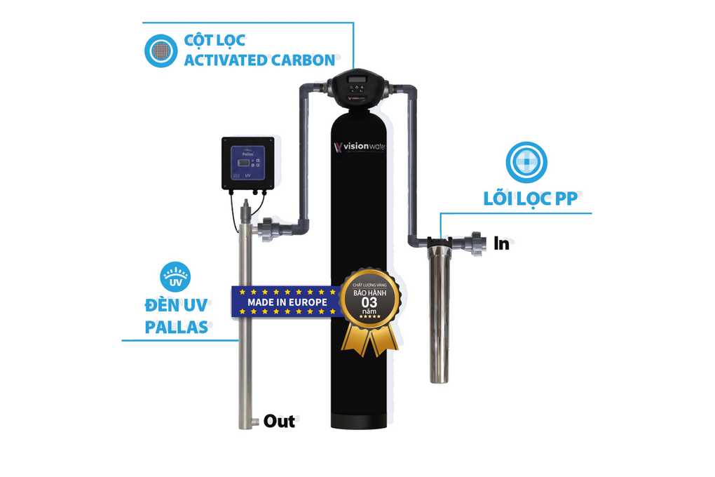 Lõi lọc PP, Cột lọc Activated Carbon và Đèn UV Pallas