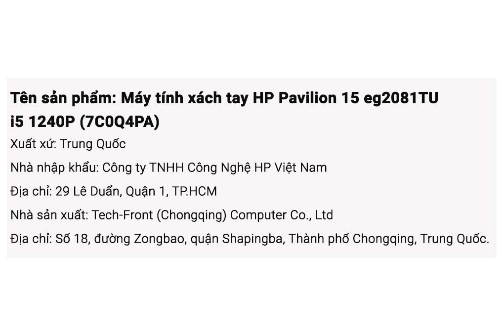 Thông số kỹ thuật Laptop HP Pavilion 15 eg2081TU i5 1240P/16GB/512GB/Win11 (7C0Q4PA)