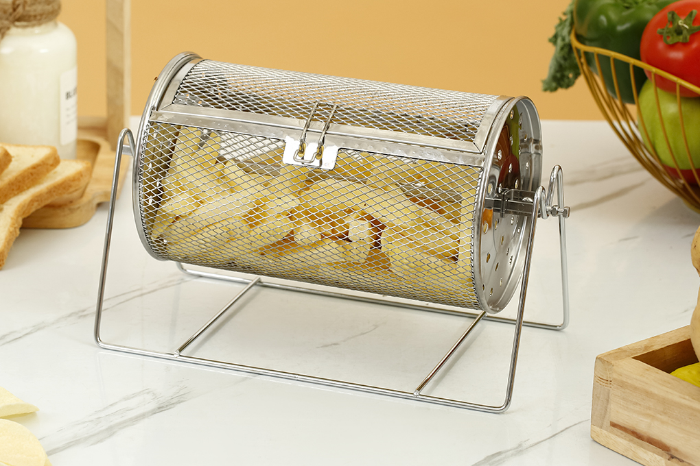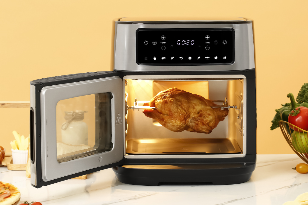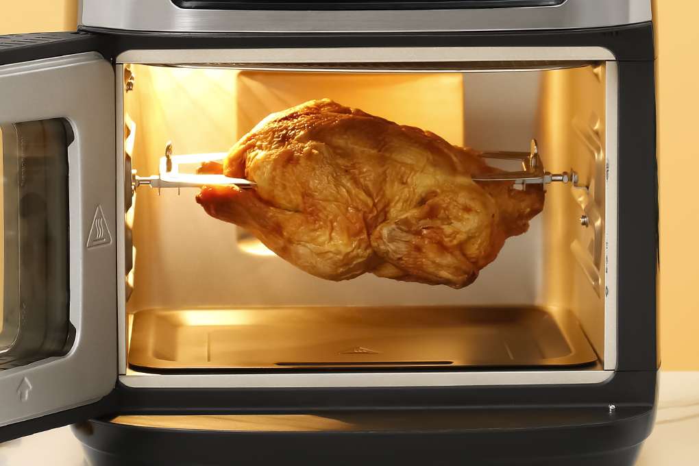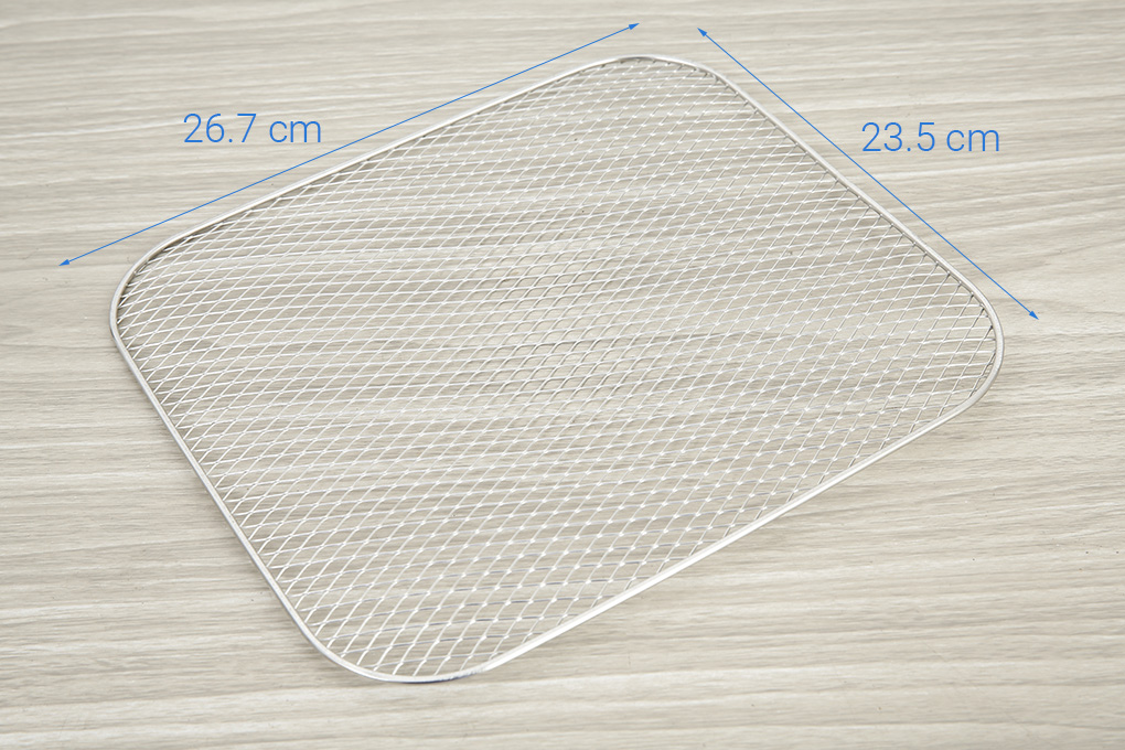 Nồi chiên không dầu có dung tích tổng 12 lít, dung tích sử dụng đến 10 lít có thể nướng gà nguyên con khoảng 1.2 kg.