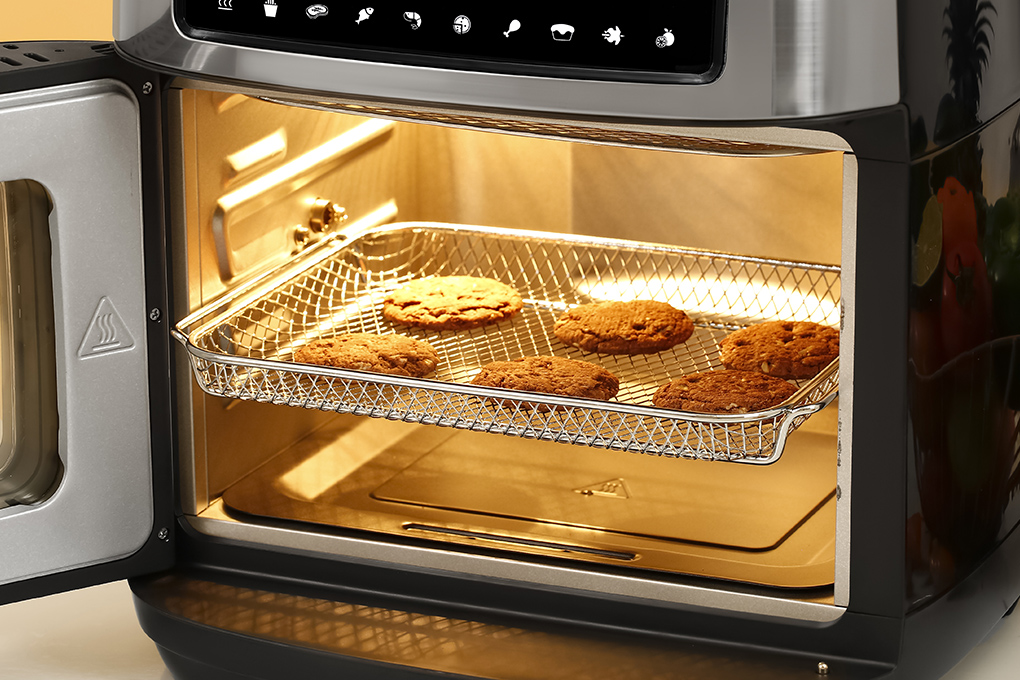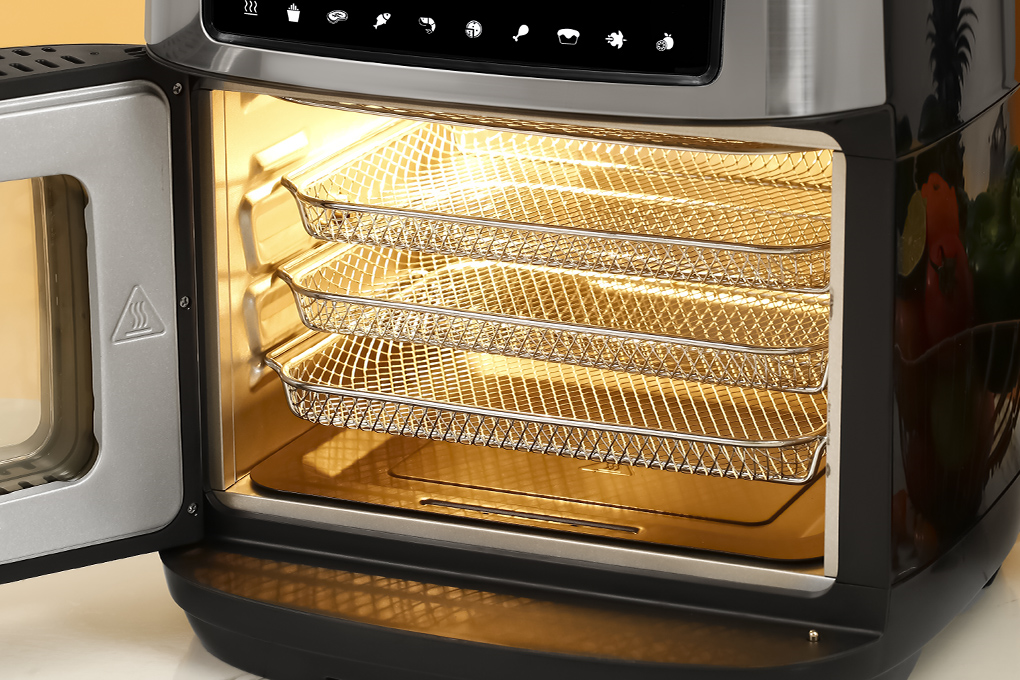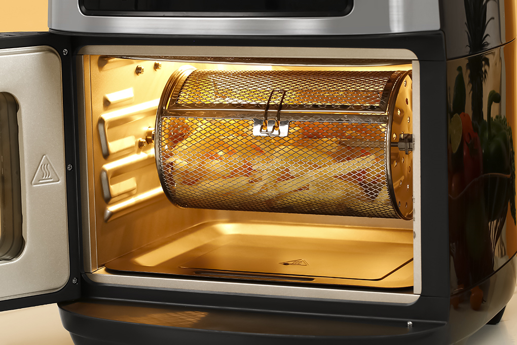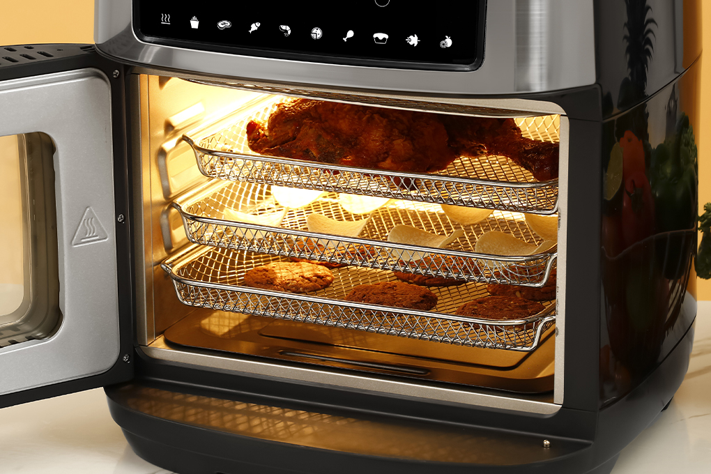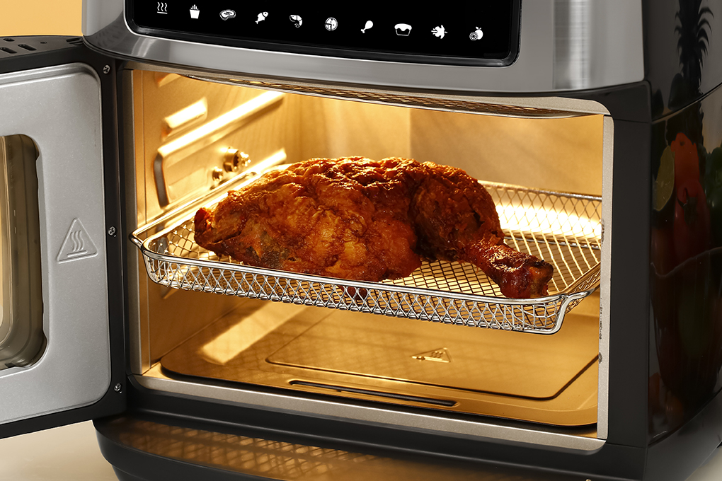 Thiết lập 10 chức năng cài đặt sẵn giúp bạn dễ dàng chuẩn bị bữa ăn phong phú cho gia đình mỗi ngày. Các chức năng gồm chiên không dầu, khoai tây, thịt, cá, tôm, pizza, đùi gà, bánh mì, gà nướng nguyên con, sấy khô.