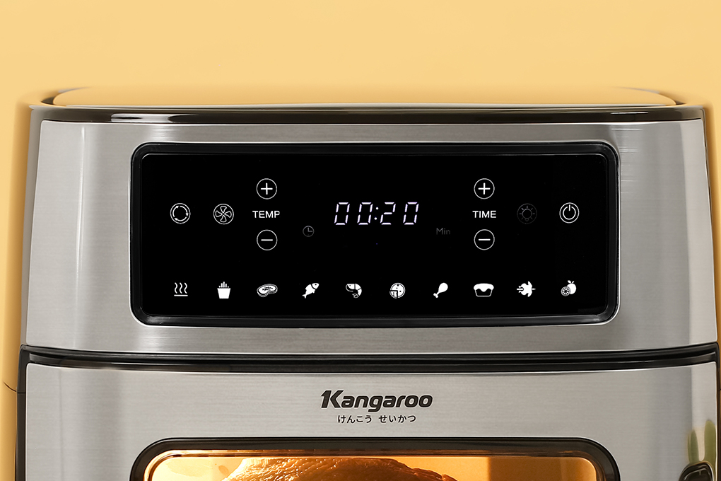 Lò chiên không dầu Kangaroo KG12AF1A 12 lít mẫu mã đẹp mắt, 10 chức năng cài đặt sẵn, điều khiển cảm ứng, dung tích lớn, công suất mạnh mẽ, công nghệ nấu hạn chế dầu mỡ giúp nấu ăn đa dạng, tốt cho sức khỏe, lựa chọn tuyệt vời cho căn hộ hiện đại.
