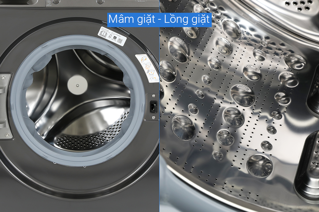 - Lồng giặt bằng thép không gỉ cho độ cứng cáp và sáng bóng trong suốt thời gian sử dụng.