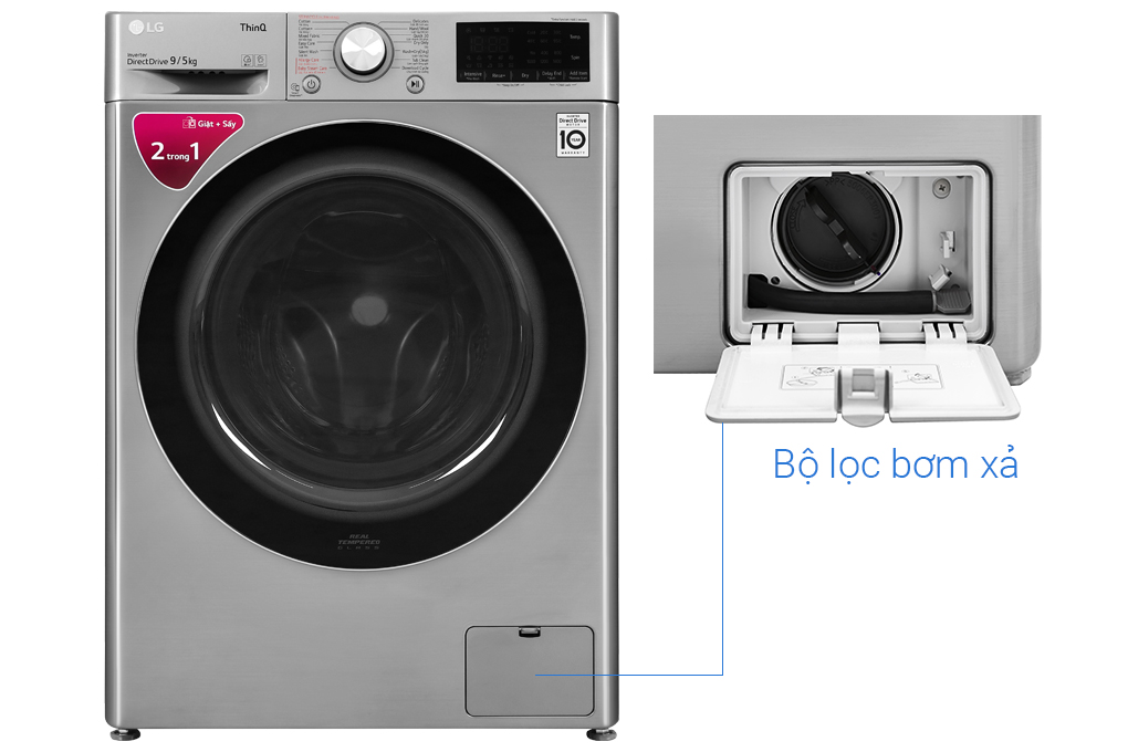 - Máy giặt sấy LG Inverter 9 kg - sấy 5 kg FV1409G4V thuộc kiểu máy giặt lồng ngang, hiện đại mang phong cách châu Âu, cùng với nắp cửa làm bằng kính chịu lực sang trọng, bền và dễ dàng vệ sinh.