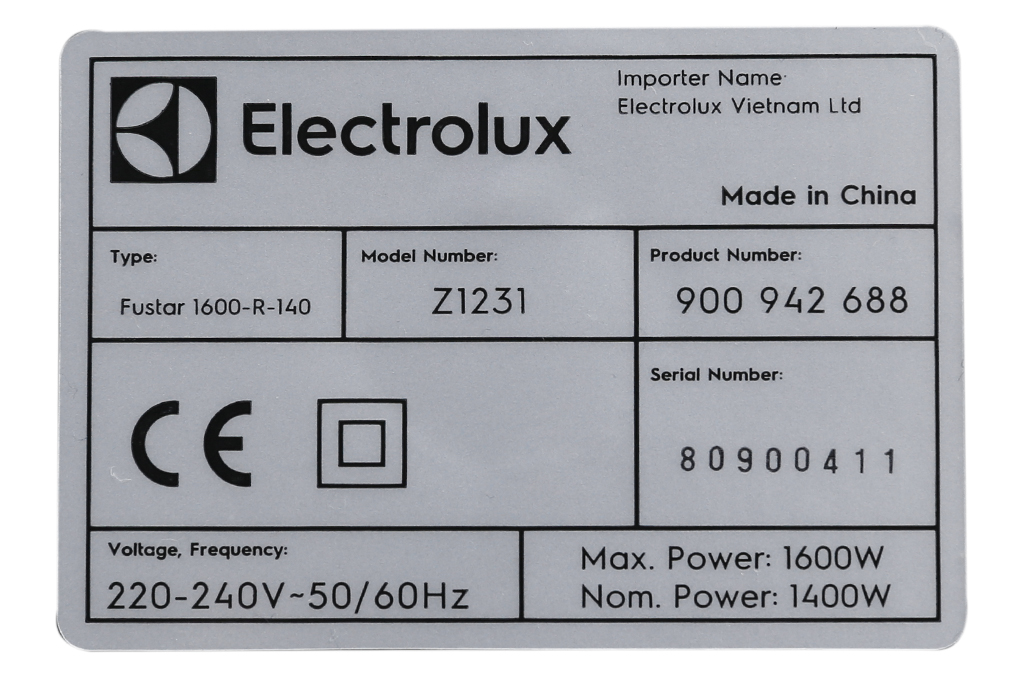 Thông số kỹ thuật Máy hút bụi dạng hộp Electrolux Z1231