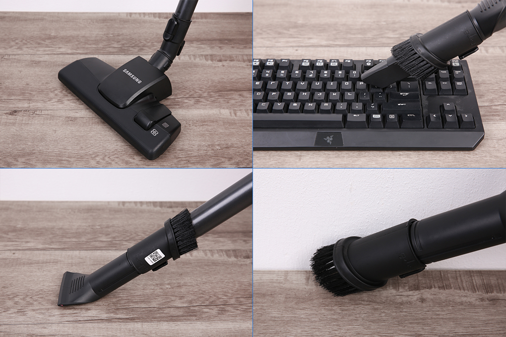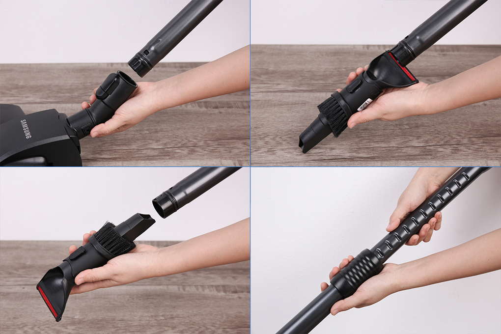 Sử dụng đầu hút phù hợp với không gian vệ sinh. Ví dụ: ống nối dài hút những chỗ cao như trên tường nhà, đầu hút đa năng hút những vật dụng khó vệ sinh như bàn phím máy tính,...