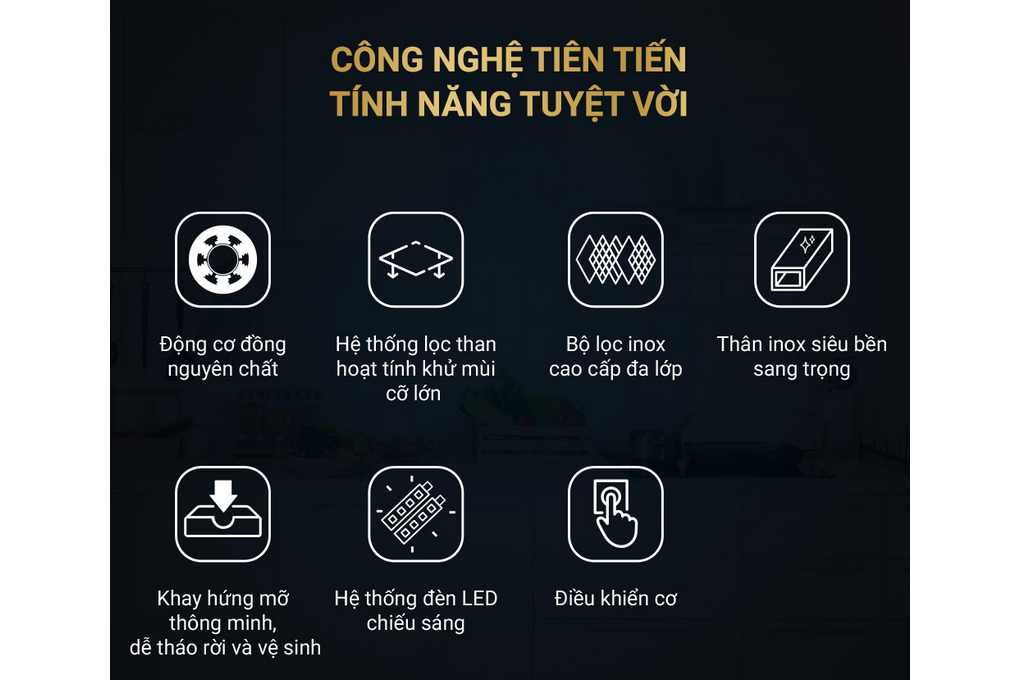 - Nếu gia đình bạn không thể bố trí lỗ thoát khí ra ngoài môi trường, không muốn đục tường… thì chế độ hút khử tuần hoàn bằng than hoạt tính sẽ giúp khử mùi và trả lại cho bạn luồng không khí thoáng sạch.