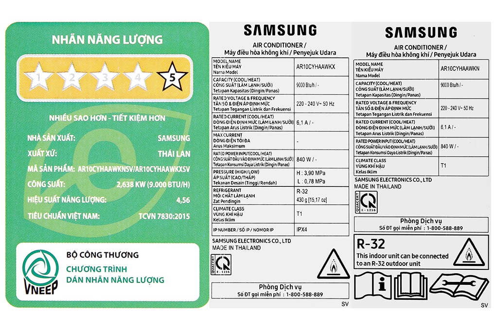 - Sản phẩm có tem năng lượng đạt chuẩn 5 sao, hiệu suất năng lượng 4.56.