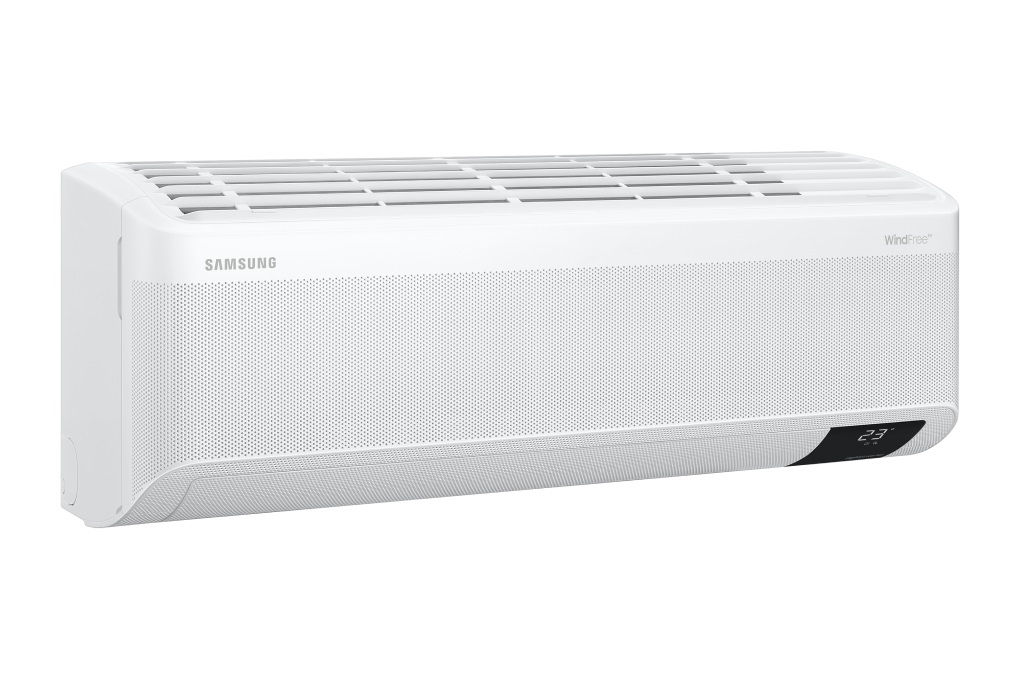 - Máy lạnh Samsung này sở hữu lớp vỏ ngoài cứng cáp, gam màu trắng thanh nhã, đi kèm thiết kế với các cạnh được bo tròn nhẹ nhàng, phù hợp với nhiều không gian nội thất khác nhau.