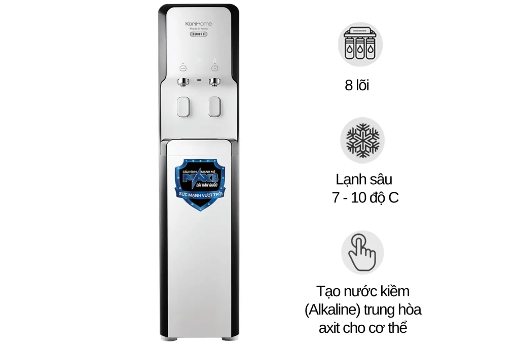 - Hệ thống 9 lõi lọc nguyên khối, thay nhanh cao cấp của Hàn Quốc