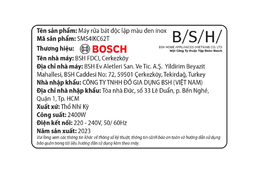 - Bosch SMS4IKC62T mang kiểu dáng máy rửa chén độc lập hiện đại, thiết kế có thể lắp cạnh tủ bếp hoặc trong hộc tủ ở bên dưới kệ bếp gọn gàng. Với đường nét tinh tế, sắc đen hiện đại, sản phẩm tạo điểm nhấn cho không gian bếp thêm phần cao cấp, trang nhã.