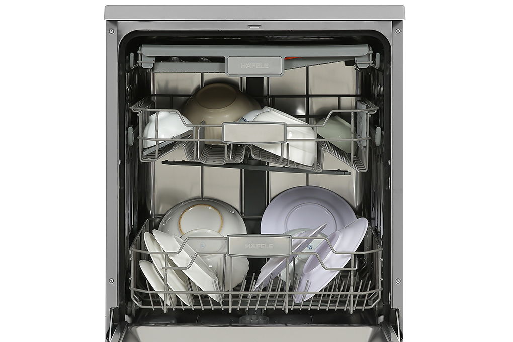 - Máy rửa chén Hafele thuộc dòng máy rửa chén độc lập nên sẽ linh hoạt được vị trí đặt, thiết kế với tông màu bạc inox dễ dàng kết hợp với nội thất trong không gian bếp.