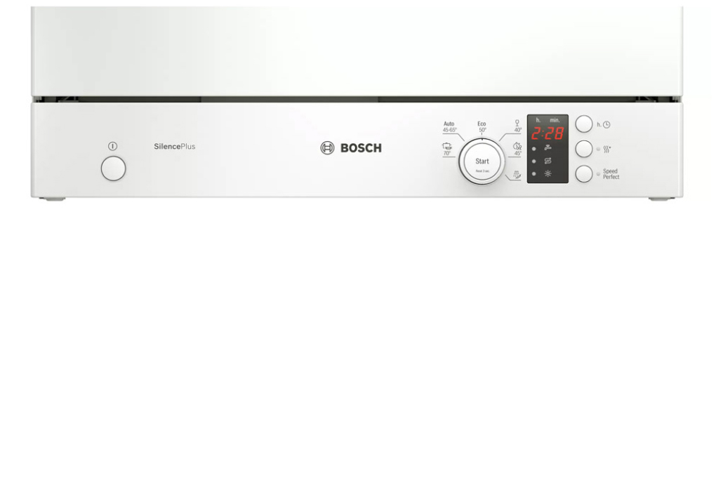 - Máy rửa chén Bosch hoạt động với công suất 2400W cho khả năng rửa trong một lần khoảng 2 bữa ăn Việt (6 bộ Châu Âu).