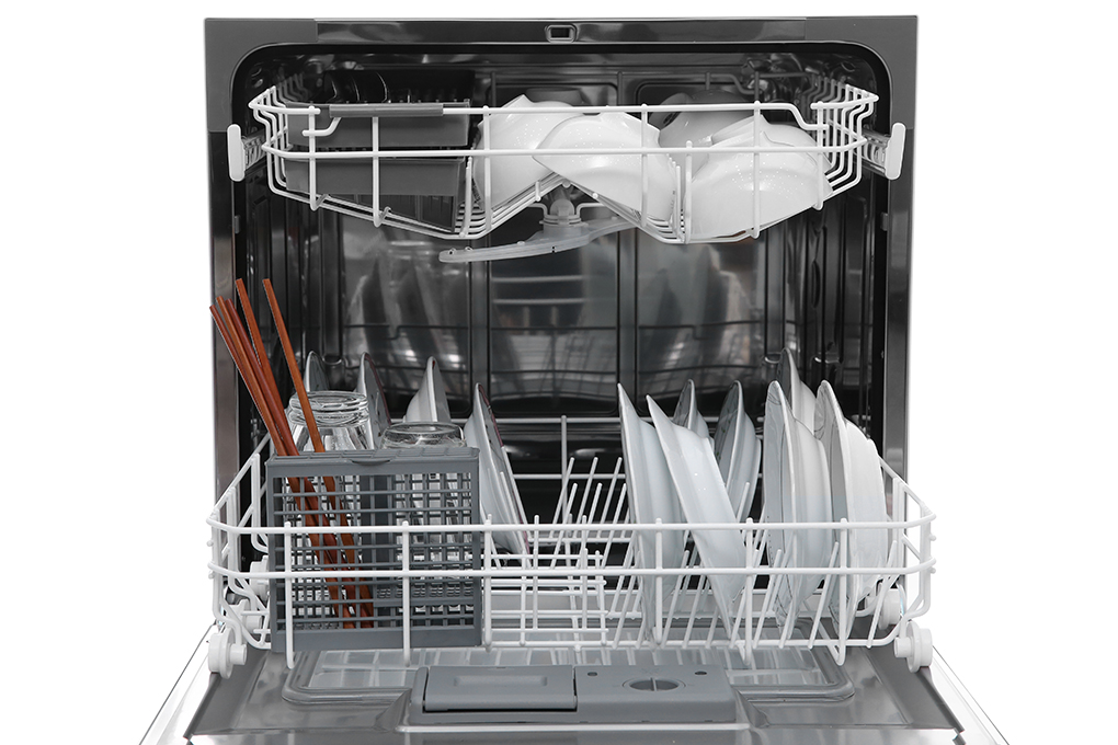 Máy rửa chén mini được thiết kế với 2 khay đựng lớn: