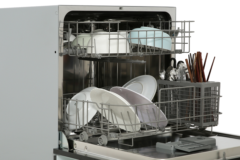 Là máy rửa chén mini nhưng máy vẫn được thiết kế với 2 khay rửa: khay dưới, khay trên và đi kèm theo giỏ đựng dao, muỗng, đũa.