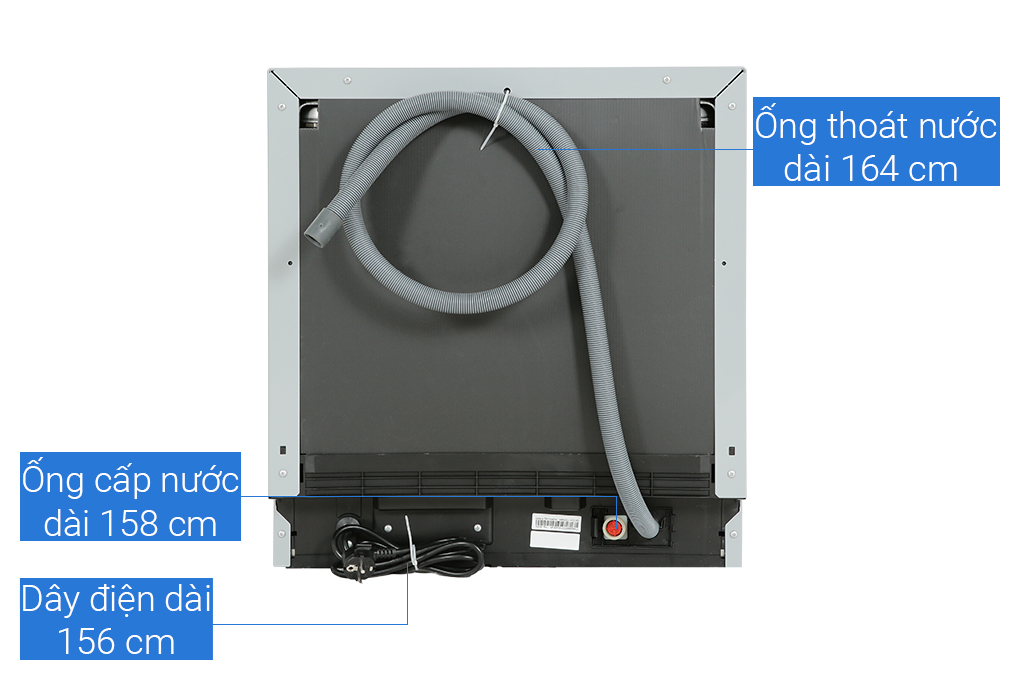- Máy rửa chén hoạt động với công suất 1400W, với khả năng rửa từ khoảng 2 bữa ăn Việt (8 bộ Châu Âu).
