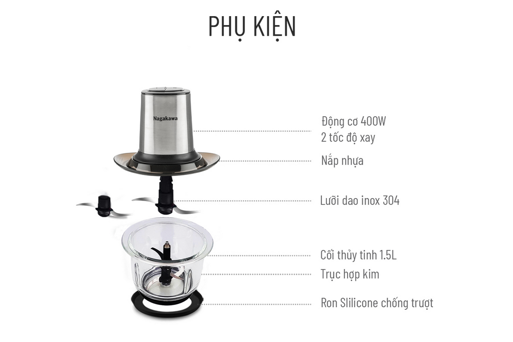 Với công suất lên đến 400W với 2 mức điều chỉnh tốc độ, máy xay thịt Nagakawa NAG0812 dễ dàng xay các loại thịt khác nhau, ngoài ra còn xay được các loại gia vị, rau củ, trái cây… chỉ trong vài giây, giúp công việc nội trợ của bạn trở nên dễ dàng và thuận tiện hơn.
