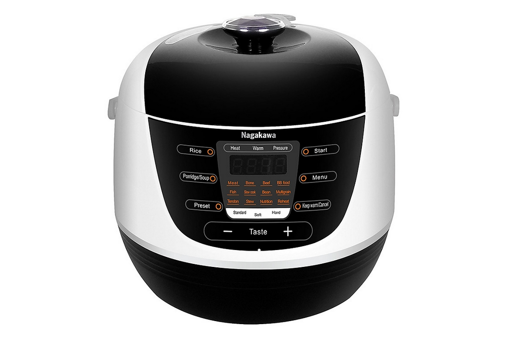 Nồi áp suất điện Nagakawa NAG0206 với công suất lớn 1000W cùng 14 chức năng nấu giúp bạn có thể nấu được nhiều món như: Nấu cơm, ngũ cốc, nấu cháo, hầm thịt bò, hầm gân, súp, canh.