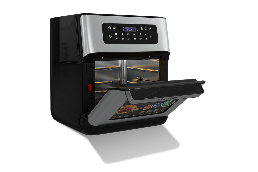 Nồi chiên không dầu Hawonkoo thiết kế dạng lò, cửa kính trong suốt dễ dàng quan sát thực phẩm bên trong