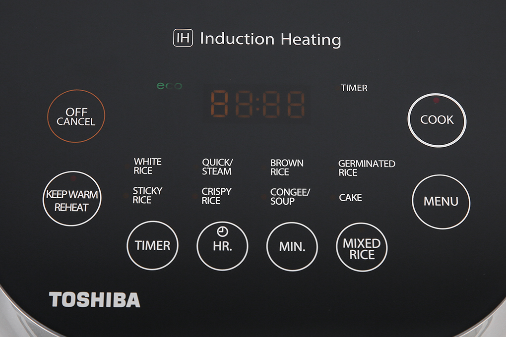 Nồi có nhiều công dụng như: cook (nấu cơm), white rice (nấu gạo trắng), sticky rice (gạo nếp), quick/steam (nấu nhanh/hấp), crispy rice (nấu cơm cháy), brown rice (gạo lứt), congee/soup (nấu cháo/súp), germinated rice (gạo mầm), cake (làm bánh), mixed rice (cơm trộn), giữ ấm (keep warm) và hâm nóng (reheat).