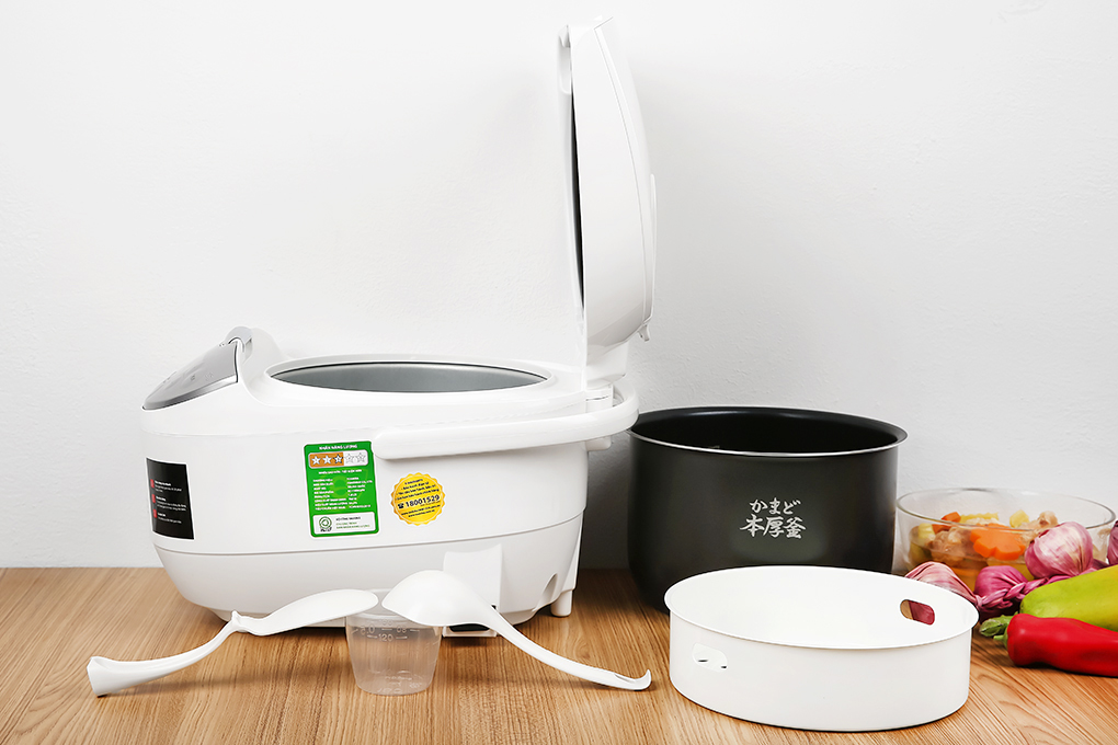 Thực đơn gồm: 1 nút chức năng giữ ấm + 11 menu gồm: nấu nhanh, cơm trộn, cháo, gạo trắng, gạo lứt, gạo nếp (xôi), cơm cháy, súp, làm bánh, nấu cơm sushi, hấp cùng với chế độ giữ ấm lên đến 12 giờ cho cơm ngon hơn.
